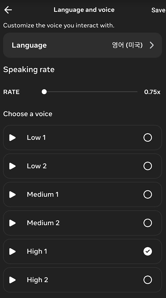 속도를 0.75배로 바꾸고 하이 톤으로 하면 좀 더 알아듣기 쉬웠습니다. 모두 시도해 본 것은 아니고, 언어에서 영어(영국) 등도 선택하면 좋을 듯합니다.