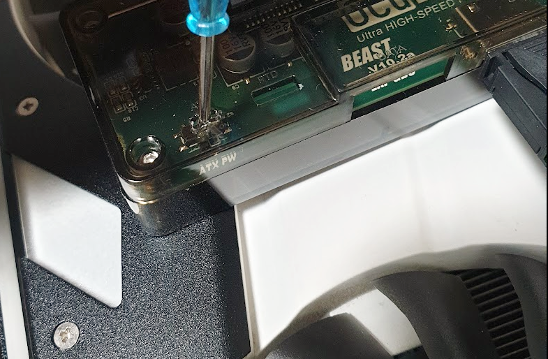 - 제가 구입한 BEAST 카드의 8핀에서는 12V 2가닥, GND 2가닥, PS_ON 1가닥(파워서플라이 제어용 핀)이 연결되어 있습니다. 인터넷에 리뷰된 과거 제품과는 PS_ON 핀 위치가 다르더군요.