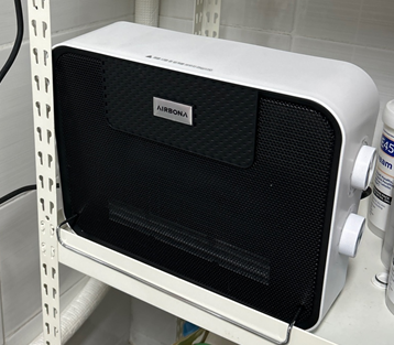 에어보나 브랜드로 욕실 수건 걸이에 브라켓을 이용하여 걸 수 있는 제품도 구입해 보았습니다. 다른 블로그를 보니까, 1단으로 틀 경우 1,000W 내외라고 하니까 기존 둥근 제품과 같은 출력인 듯합니다.