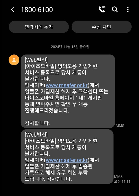 특정 알뜰폰에 가입하기 전에 개통 문제 발생이 있는지 검색을 해보고, 문제 발생 시 대비를 해 두면 좋을 것 같습니다.