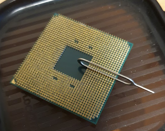 라이젠 5600의 써멀 그리스를 닦아 내다가 핀 쪽에 묻어서 이를 제거하는 중 일부 핀이 미세하게 휘었습니다.