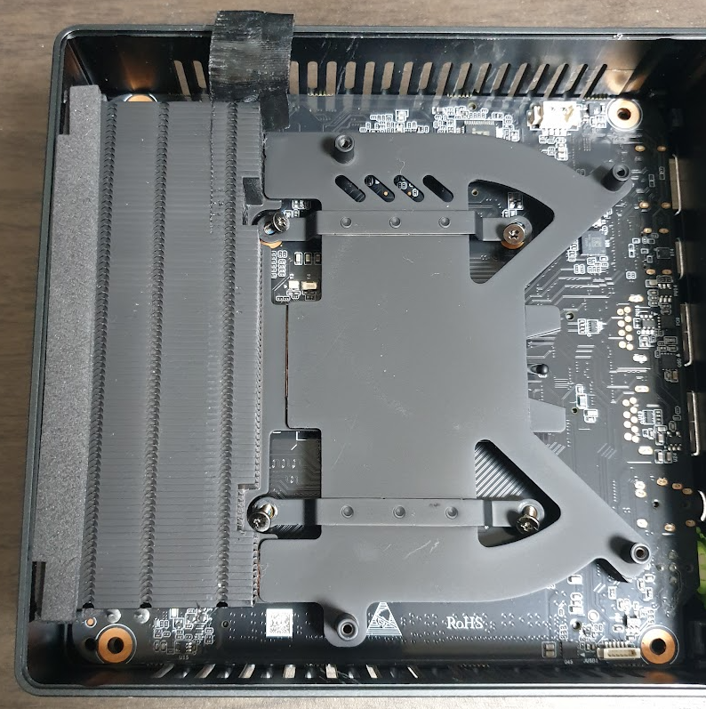 아래 작업은 램과 SSD의 방열에 도움이 될까하여 3D 프린터로 인쇄한 부품을 추가했습니다.