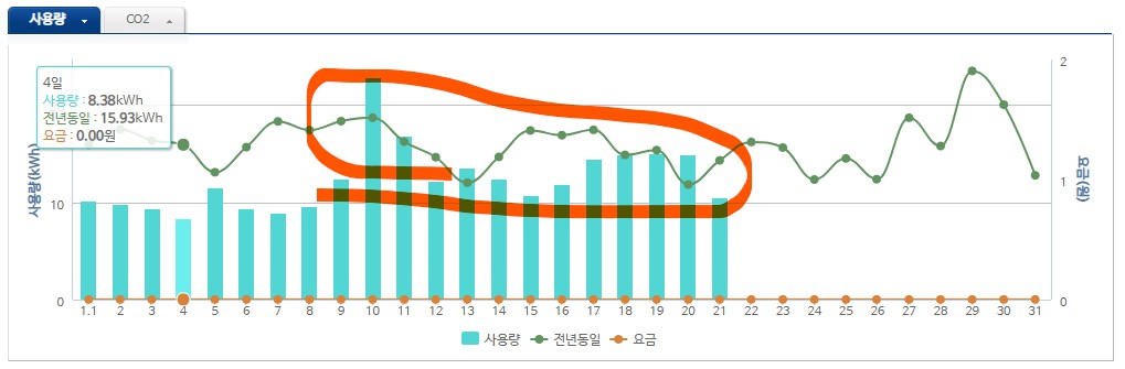 아래는 19도 정도로 맞춰놓고 수시로 가동하면서 나온 전기요금입니다. 아직 집중적으로 틀은지 열흘 정도라서 그런지 생각보다 많이 올라가지는 않았네요. 태양광 발전 상계 후에는 4만원 내외로 큰 부담은 아닌 듯합니다.