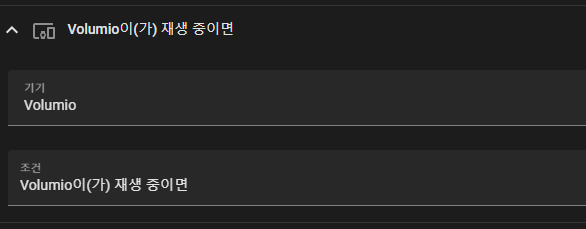 - 미리 Volumio도 Home Assistant의 기기로 추가해 놓아야 합니다. 상태를 읽을 수는 있는데 제어하는 기능은 없더라구요...