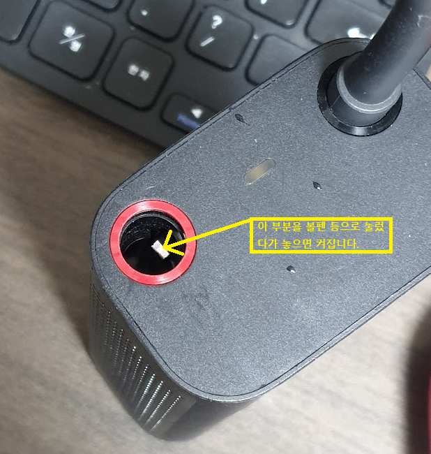 잊고 있었습니다만, 저번에도 가끔 그랬는데 전원이 잘 안켜지고 있습니다. 오늘도 안켜져서 이미 충전되어 있지만, 한번 더 충전을 한 후 꼽혀 있는 고무 파이프를 빼내니까 화면이 잠깐 들어왔다가 꺼지는 것 같더라구요. 그래서 고무 파이프를 뺄 때 천천히 빼 보았습니다. 그랬더니 잘 켜지네요. 뭔가 내부에 센서가 접촉 불량이 된 것 같습니다.