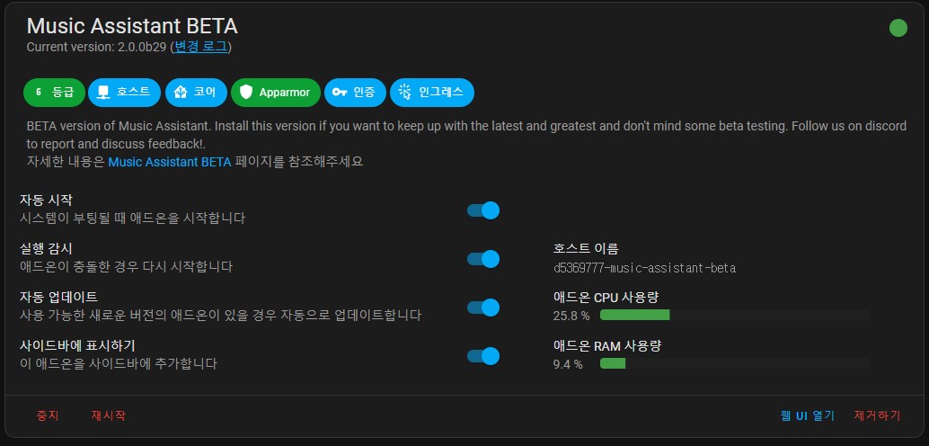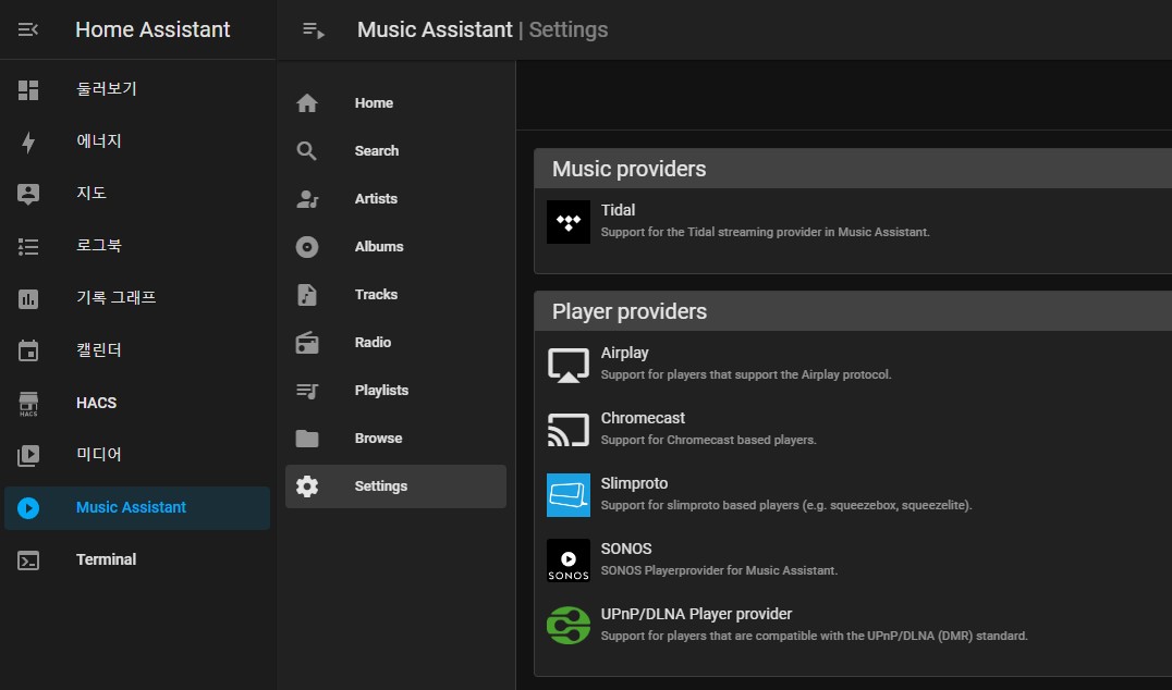 앞으로는 Music Assistant를 어떻게 자동화에 연동할 수 있는 지 알아봐야겠습니다.