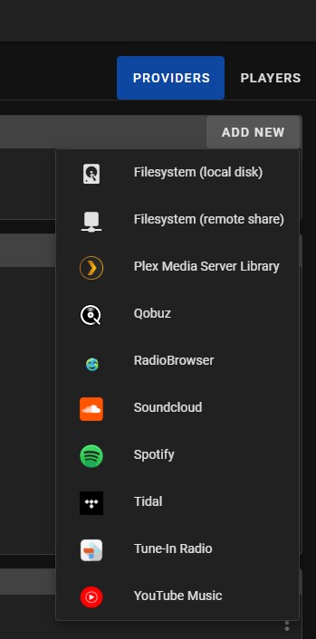 등록된 후에 Music provides에 Tidal이 나타난 모습과 출력 가능한 Player들을 확인할 수 있습니다.