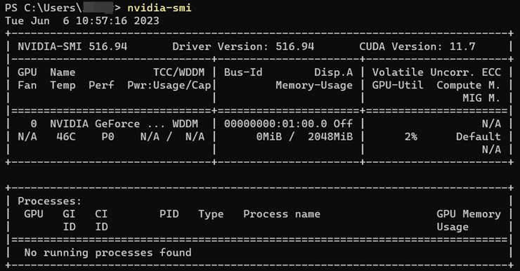 cuda가 설치되어 있는 지 확인하려면 파워쉘(Windows PowerShell 앱)을 띄우고, nvidia-smi 라고 명령을 내려 보면 알 수 있습니다. 요즘은 왠지 그래픽 드라이버만 설치되어도 아래 명령이 실행되는 것 같습니다.