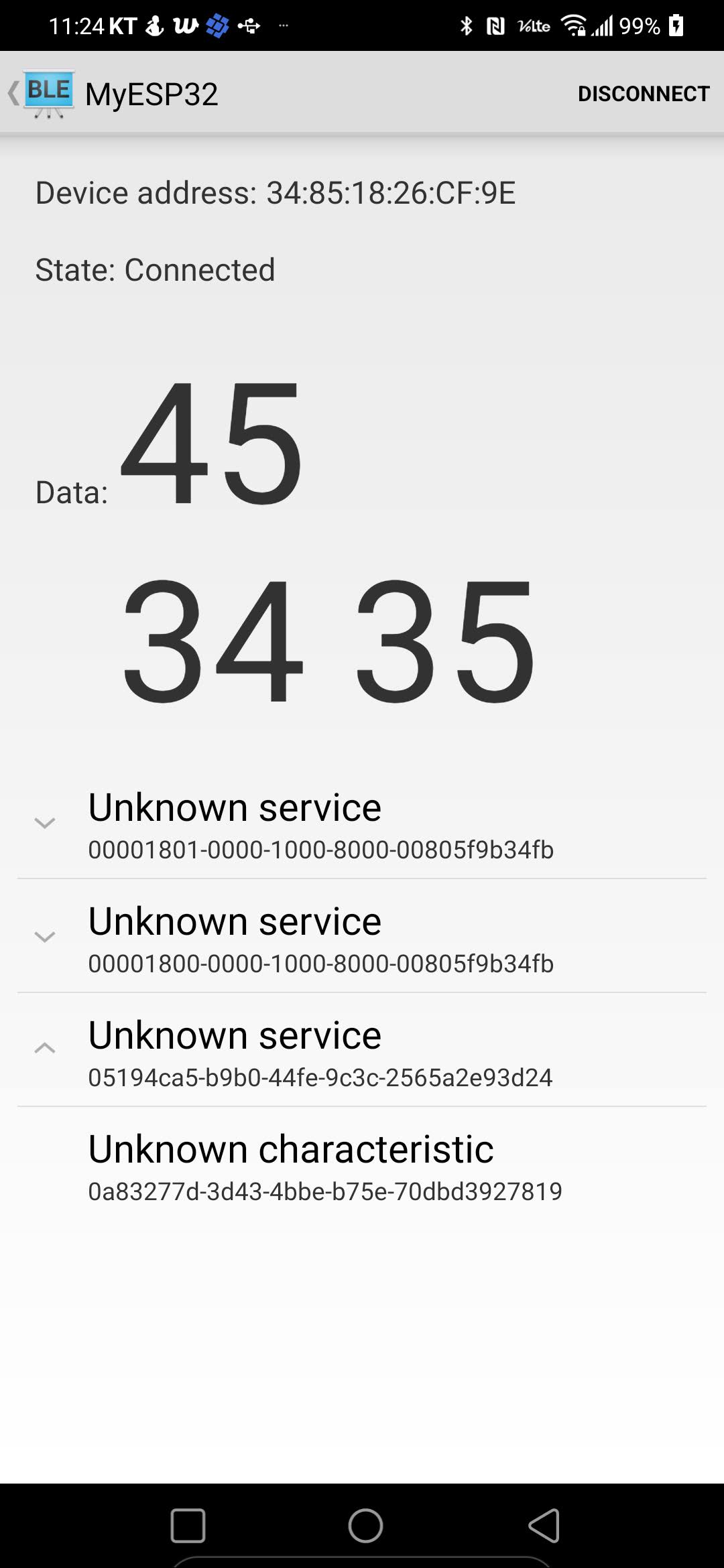 XIAO에서 제공하는 BLE 서버 예제 설명에서는 안드로이드 측에서는 LightBlue라는 앱을 사용하라고 하는데, 그 앱은 Read버튼을 눌러야 값이 나와서 자전거 타고 테스트하기에 부적절합니다.