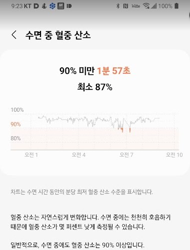 수면 중에는 90% 이하로 떨어질 때가 자주 있어서 손가락형 제품과 비교해 보아야겠습니다. -> 움직이면서 시계 차는 방식에 따른 접촉 불량 쯤으로 생각됩니다. |