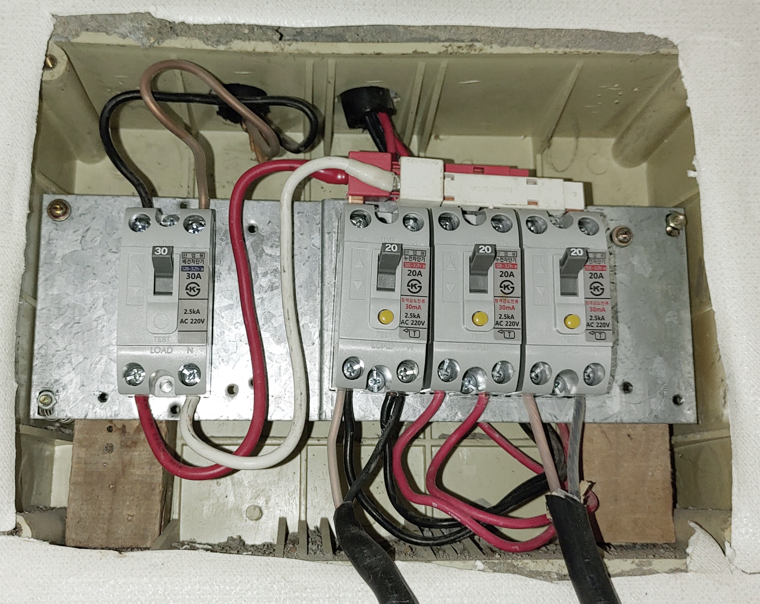 실제 설치는 어렵지 않은 편입니다. 다만, 감전되면 위험한 전기를 다루는 것이라서 주차단기를 포함한 모든 차단기를 내리고 장갑도 끼고 하는 것이 좋겠습니다.