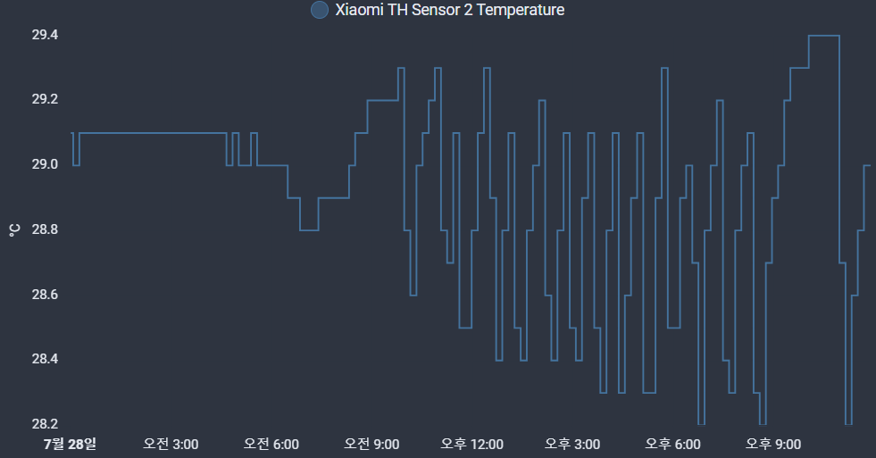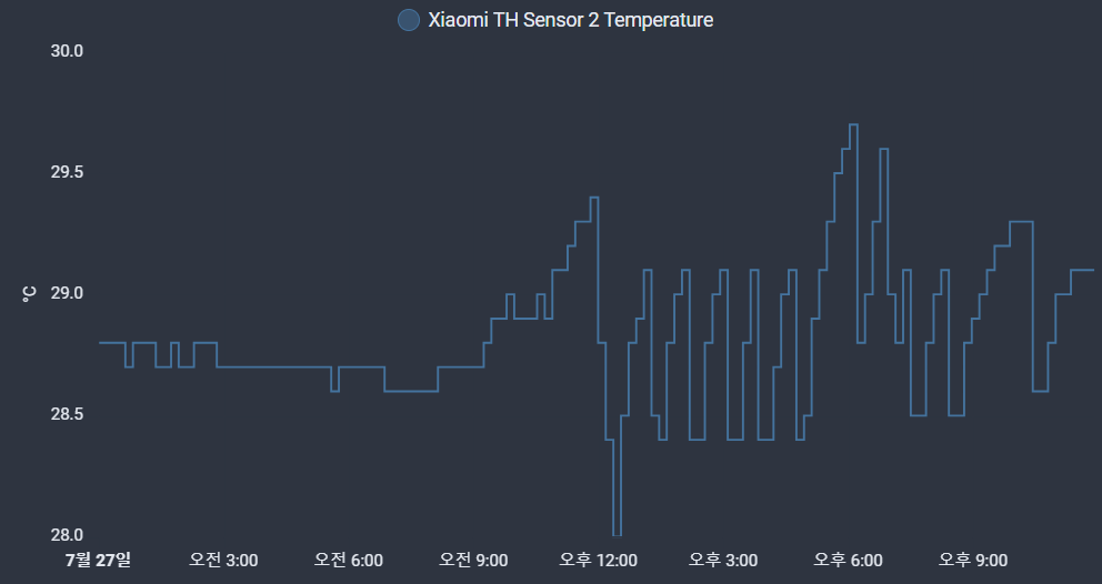 맑은 날씨 덕분에 발전량이 많아서(연평균은 11kWh/일) 과금 대상되는 전력량(수전-송전)은 27일 0.857kWh이고 28일은 2.627kWh, 29일은 5.656kWh(200~400kWh구간요금 214원 적용 시 1,210원)입니다. 물론, 긴 장마 기간에 발전량이 미미해서 전기요금은 많이 나오기는 하겠지만 그래도 에어컨을 안키고 견디기는 힘든 날씨입니다.