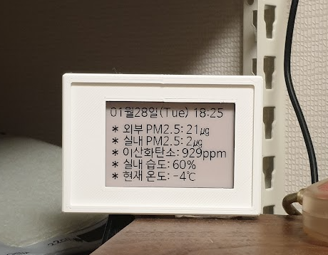 거실에 놓아둔 라즈베리파이 7인치 모니터로 Home Assistant가 표시되는 부모님 댁과 달리, 저는 컴퓨터나 스마트폰으로만 확인이 가능했는데, 잉여로 남아 돌던 e-ink 2.7인치에 표시해 보았습니다.