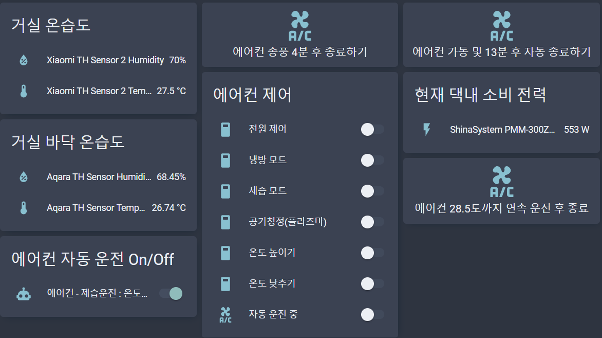 구형 에어컨을 자동화하여 가동하고 있지만, 가끔 수동으로 (에어컨 자동화 스크립트를) 가동하고 싶을 때가 있습니다.
