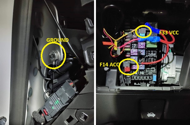 각 단자의 역할에 대해서는 퓨즈 덮개 뒷면을 보면 잘 인쇄되어 있었습니다. F33은 제가 임의로 찾아서 연결한 것이라서 잘 한 것인지는 자신 없네요. 하지만 일단 작동에는 문제가 없었습니다.