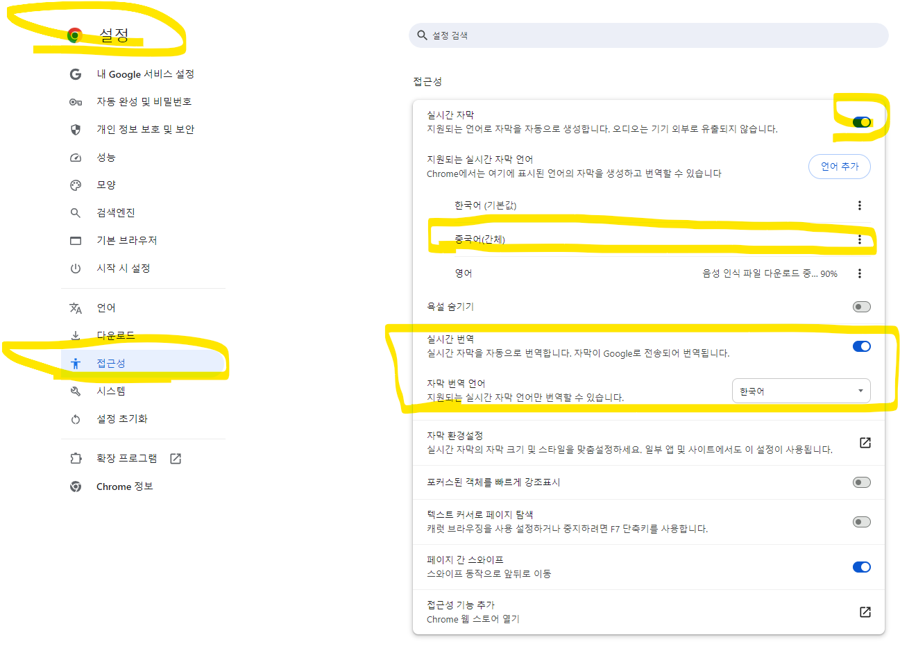 최근 크롬에서는 실시간 자막 생성 및 번역 기능을 추가하였습니다.