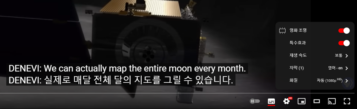 아래는 유튜브의 자동 번역 기능을 이용한 것인데, 한국어로 2개 나오는 이유는 마우스 툴팁 번역 확장의 기능과 중복되었기 때문인 것 같습니다(꺼주면 되겠죠).